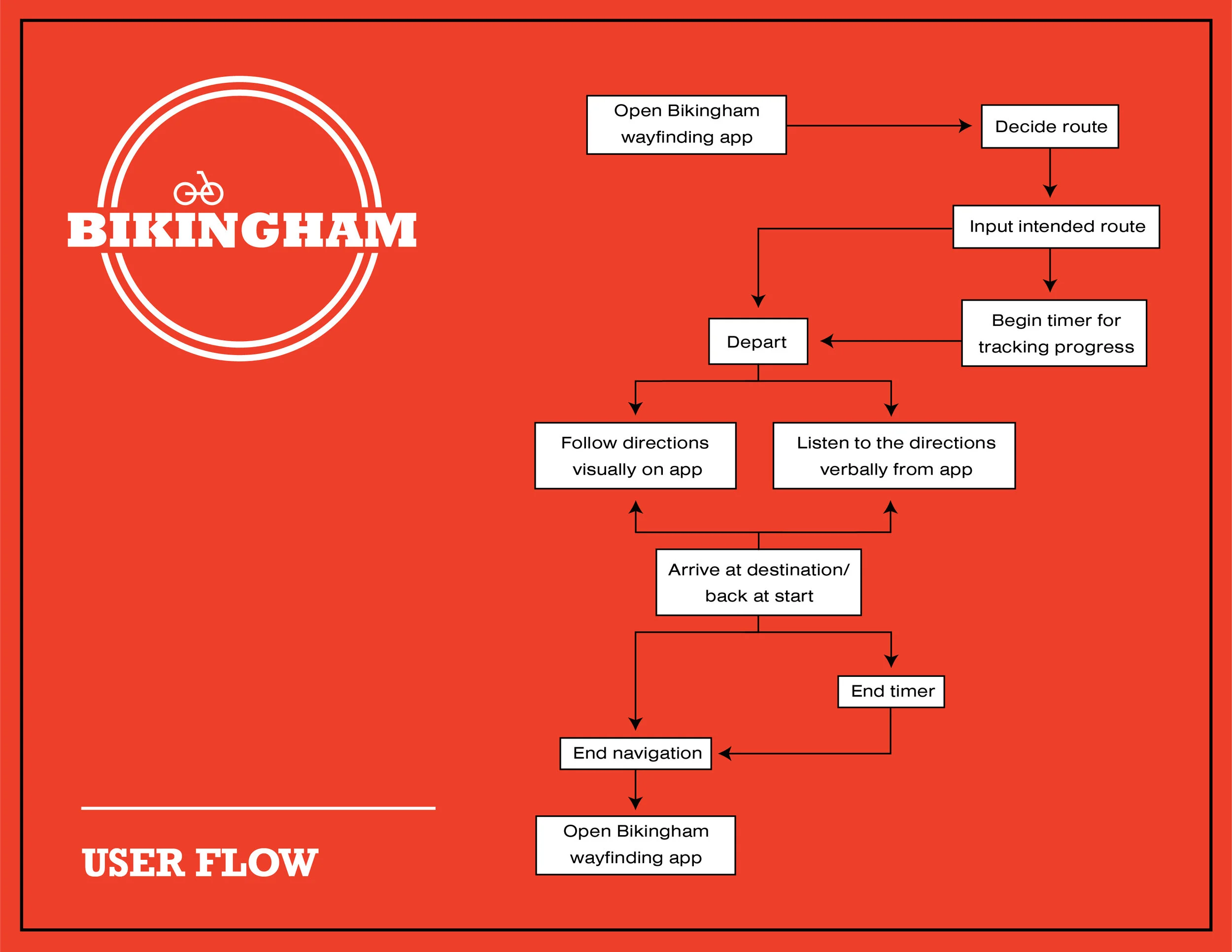 To test the usability of my prototype for the hypothetical app Bikingham, I called upon a peer who bikes often to be my subject. We started out with a brief introduction of the app and its purpose, and from there I asked them to decide a route to ride and use the app to navigate as they would naturally. I used the program InVision in order to create a low-fidelity prototype, which my tester used to simulate a consumer navigating the interface. Since we weren’t able to do this in person, I asked them to think aloud so if anything came up that made usability difficult, I could easily identify it so I could fix it.