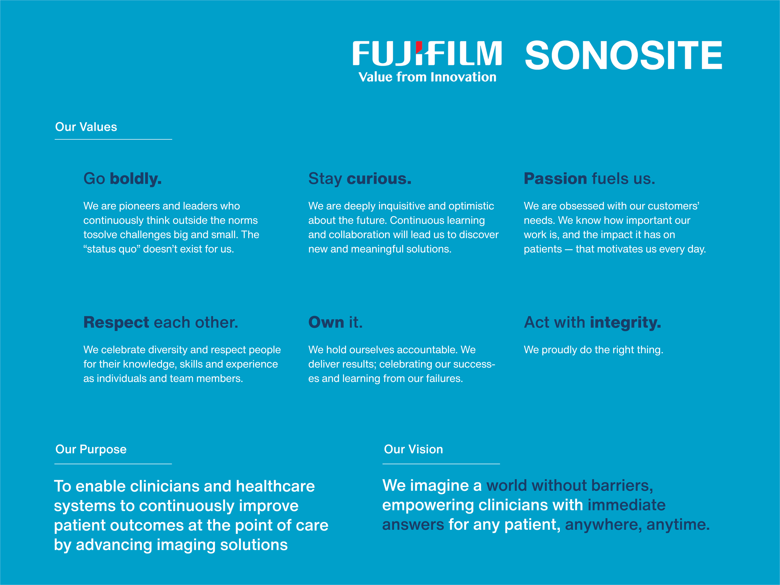 In March 2022, I was asked by the leadership team to redesign the Core Values graphic, which is seen frequently within internal marketing material. Using the entirety of the secondary color palette from before the 2023 rebrand, elements from the old design clashed, fighting for attention. My goal was to reorganize the content to establish a stronger hierarchy, while simplifying and modernizing the color palette.